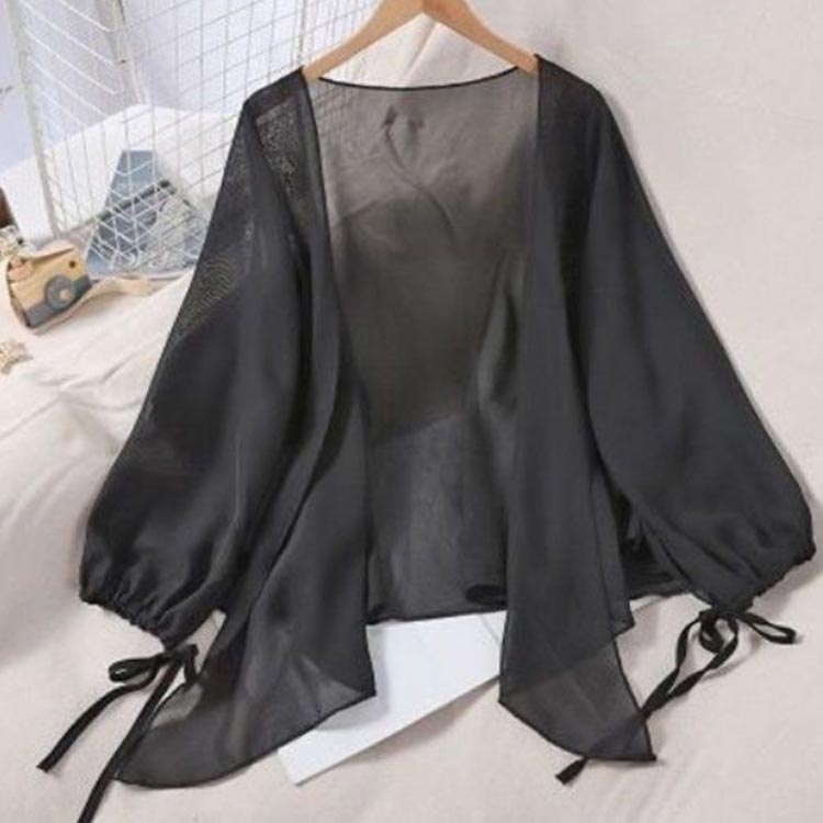 サマーカーディガン シフォン レディー トップス カーディガン ボレロ 新作 ベージュ ホワイト ブラック グレー S M L XL 2XL