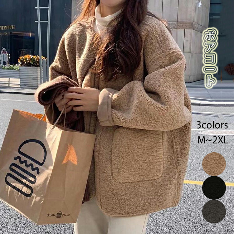ボアコート レディース 秋 冬 ボアジャケット アウター コート ノーカラー もこもこ ショート丈 チャック 防寒 厚手 暖かい ゆったり あったか キレイめ 大人 可愛い カジュアル