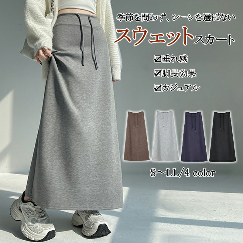 スカート レディース スウェットスカート ロングスカート ボトムス スウェット ストレッチ フレア マキシ マキシスカート Iライン 無地 長い ゆったり ハイウエスト カジ バックスリット