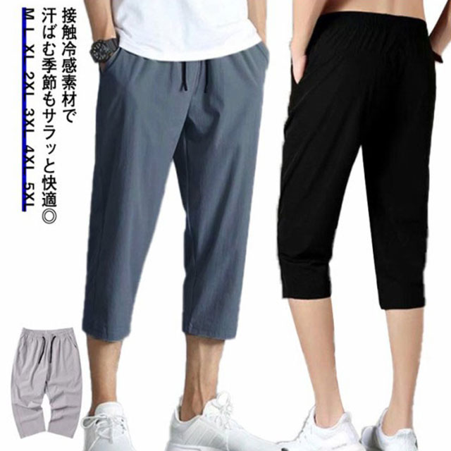 クロップドパンツ 接触冷感 ハーフパンツ メンズ ひざ下 膝下丈 ストレッチ 7分丈 ゆったり チノパン 夏 大きいサイズ スポーツ 春夏 テーパード 無地 カジュアル 涼しい アイス ゴルフ