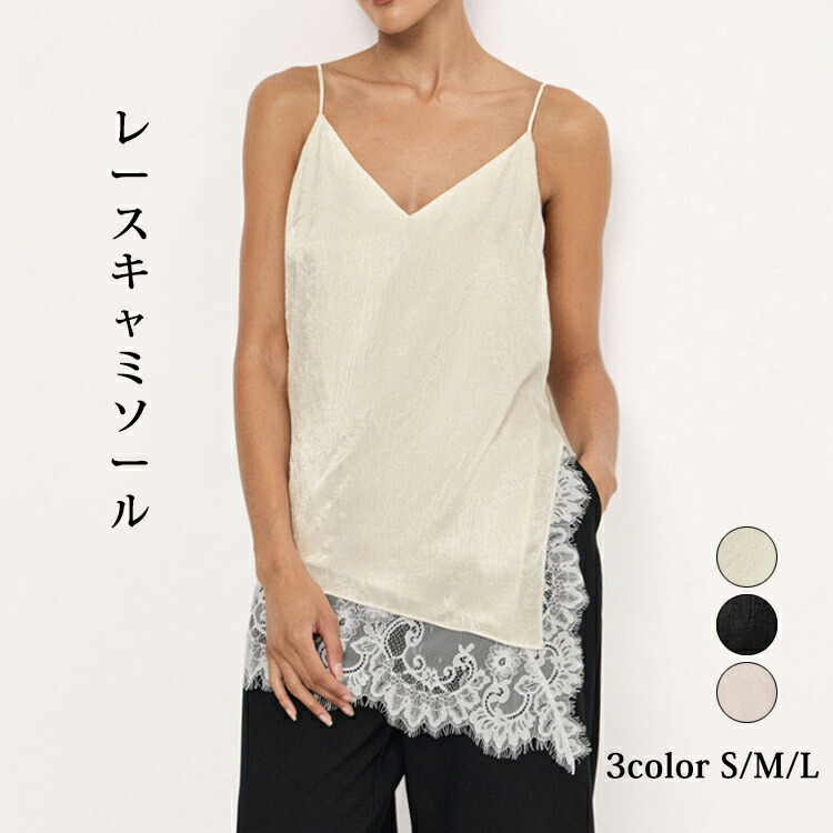 レース サテン レースキャミソール キャミ レディース ロング ドッキング ビスチェ サテンキャミ レースキャミ レイヤード Vネック 重ね着 チラ見せ インナー 肩紐調節可 ベスト チュ トップス