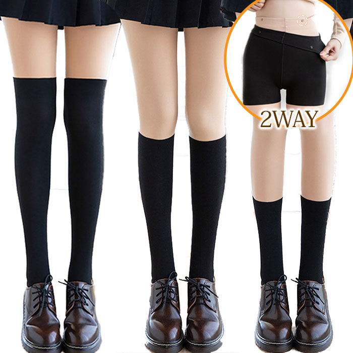 タイツ ソックス風 ハイソックス風 ニーハイ風 アンダーパンツ風 フェイクニーハイ ベージュ 2枚重ね オールシーズン 1足 2WAY