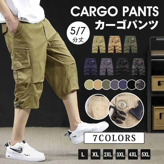 男性用 ボトムス 七分丈 仕様 ゆとり シルエット 多収納 デザイン 動きやすい 夏物 作業 用 外出 兼用 カジュアル コーデ サイズ 対応 向け