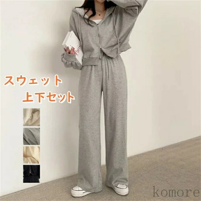 スウェット セットアップ レディース 上下セット シップアップパーカー フード付き ロングパンツ 二点セット 着やせ 長袖
