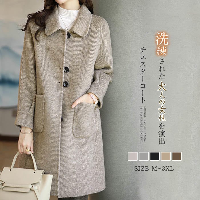 チェスターコート レディース 秋冬 冬 アウター ロングコート 秋 きれいめ カジュアル 大きいサイズ コート 長袖 無地 体型カバー シンプル 暖か 防風 防寒 春