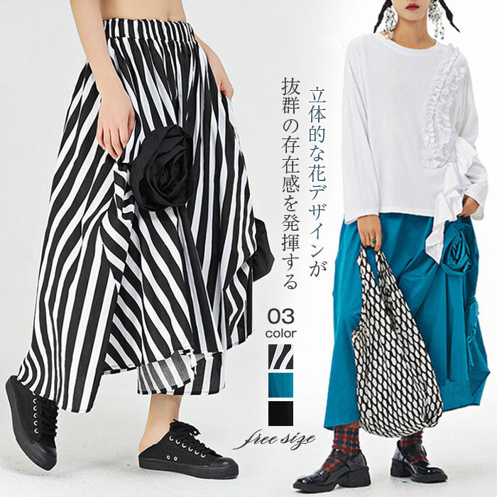 アシンメトリー スカート レディース ナチュラル 大人 個性的 立体花 春 ロング ロングスカート 定番 ウエストゴム ボトムス おしゃれ オリジナル 体型カバー カジュアル