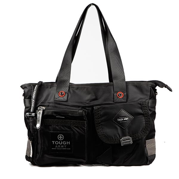 トートバッグ メンズ レディース 大容量 無地 黒 ブラック ポケット 収納 アウトドアー かばん A4 TOUGH 仕事用 防水 ショルダー バッグ 学生 大人 撥水加工 縦長 横長 ポリエステル