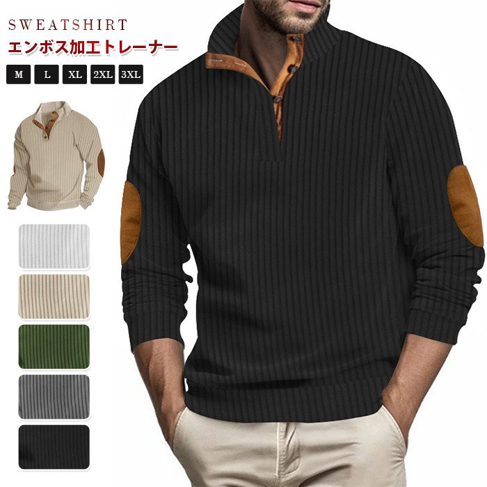 トレーナー ジャガード メンズ ゴルフウェア 凸凹 エンボス加工 ストライプ スタンドカラー 長袖 立ち襟 配色 秋 冬 トップス プルオーバー 大きいサイズ 大人 カジュアル シンプル フ おしゃれ