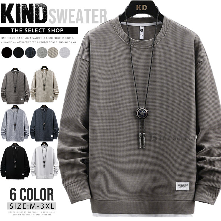 トレーナー ワッフル メンズ 裏起毛 薄手 スウェットシャツ 長袖Tシャツ 無地 ロングTシャツ ロンT ワッフル編み プルオーバー 長袖 Tシャツ 重ね着風 スポーツ 秋服 冬 冬服 春服