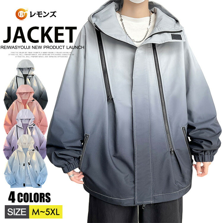 マウンテンパーカー ウインドブレーカー メンズ オーバーサイズ ボリュームネック レディース ゆったり ブルゾン 大きめ ハイネック グラデーション 春 防風 アウター 夏 アウトドア ス ジャンバー