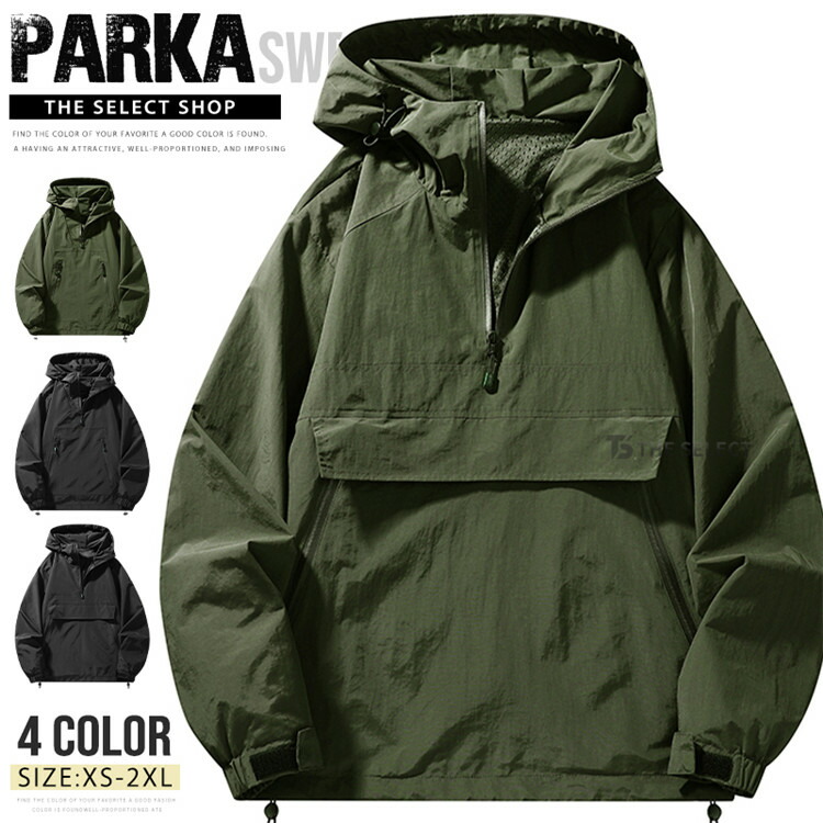 アノラック メンズ レディース パーカー 撥水 ハーフジップ トップス オーバーサイズ ライトアウター アノラックパーカー プルオーバーパーカー マウンテンパーカー 羽織 フーディ ウインドブレーカー