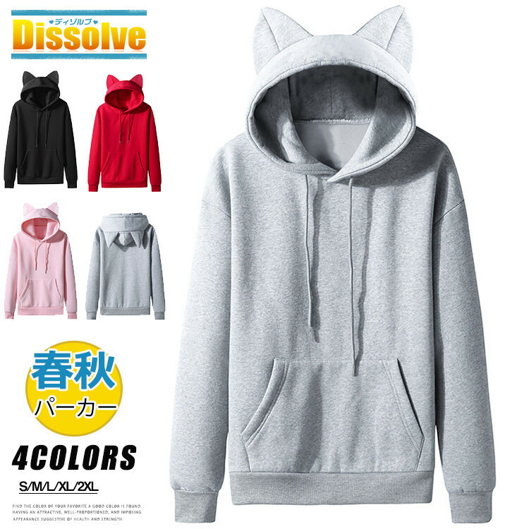 無地パーカー メンズ レディース おしゃれ パーカー 長袖 プルオーバーパーカー 猫の耳 可愛い パーカ トップス 通学 カジュアル 男女兼用 秋服 ルーム フード付き 春服