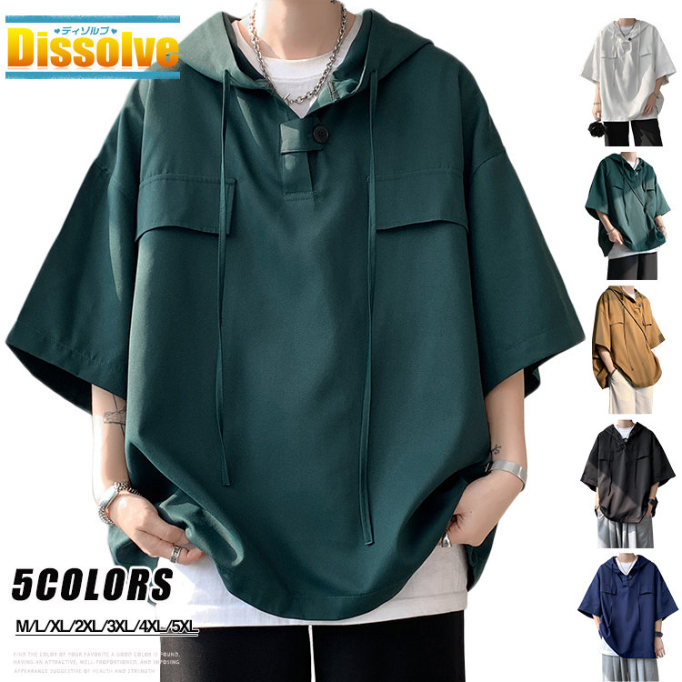 夏用パーカー メンズ ゆったり 半袖 パーカー プルオーバー 無地パーカー ビッグシルエット 夏 夏服 フード付き UVカット カッコイイ シンプル 薄手 サマーパーカー ビッグサイズ 全5 トップス