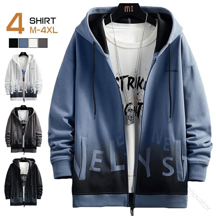 秋おしゃれ メンズパーカー グラデーションカラー スポーツウェア フード付き 薄手スウェット 英文字プリント ジップアップ 長袖 羽織り メンズファッション トップス