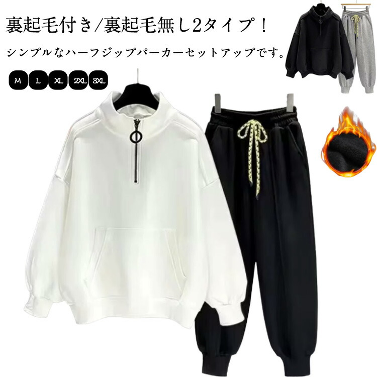 ハーフジップ モックネック 上下セット メンズ 秋冬 裏起毛付き セットアップ 長袖 大きいサイズ パーカー 秋 パンツ スウェット プルオーバー カジュアル 裏起毛無し 冬 かっこいい