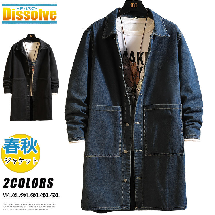ステンカラーコート ロングコート メンズ 春服 デニムジャケット ジャン ロング丈 デニム 春ジャケット 通勤 お兄系