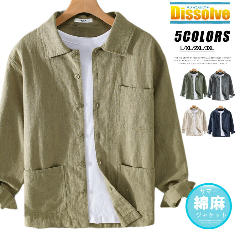 リネンジャケット 麻ジャケット メンズ 春夏用 無地 麻 ブルゾン メンズ 薄手 綿麻 リネン シャツジャケット メンズ 春夏