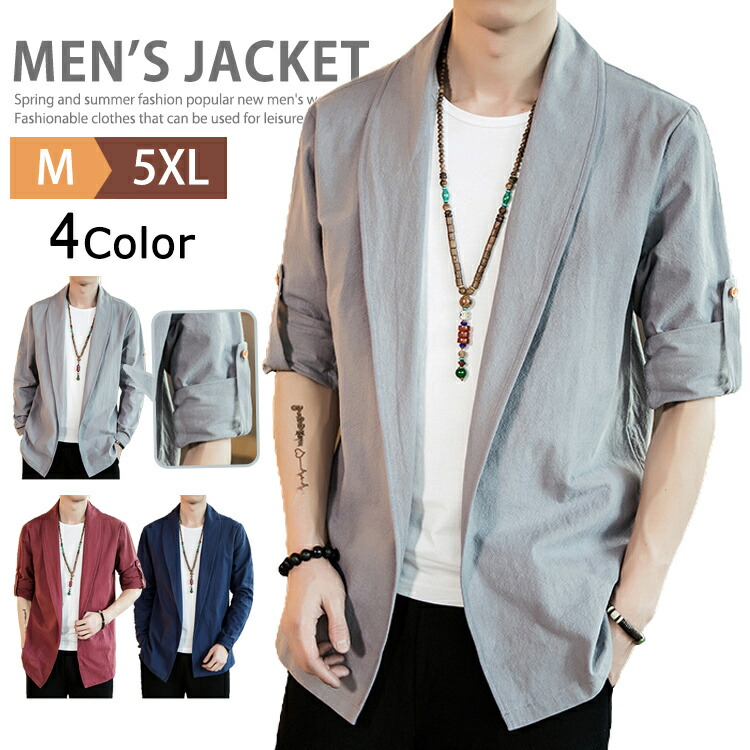 メンズジャケット 40代 50代 60代 サマージャケット テーラードジャケット 長袖 チャイナ風 カジュアル リネンジャケット 無地 おしゃれ 大きいサイズ 紳士服 アウター ゴルフ 仕事 普段着