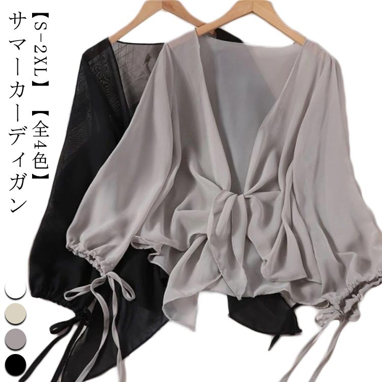 サマーカーディガン シフォン レディース 透け感 おしゃれ カーディガン ボリューム袖 薄手 UVカット 長袖 きれいめ ボレロ 羽織 冷房対策 体型カバー トップス 白 黒 ベー 無地