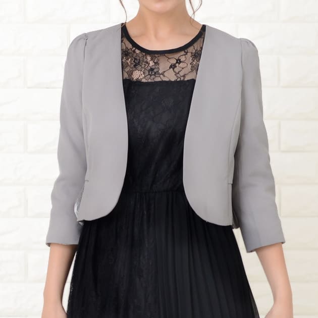 七分袖ボレロ パーティー カーディガン ドレス用 フォーマル レディース 二の腕隠し お呼ばれ 結婚式 披露宴 二次会 グレー ベージュ ブラック 夏 秋 冬 春