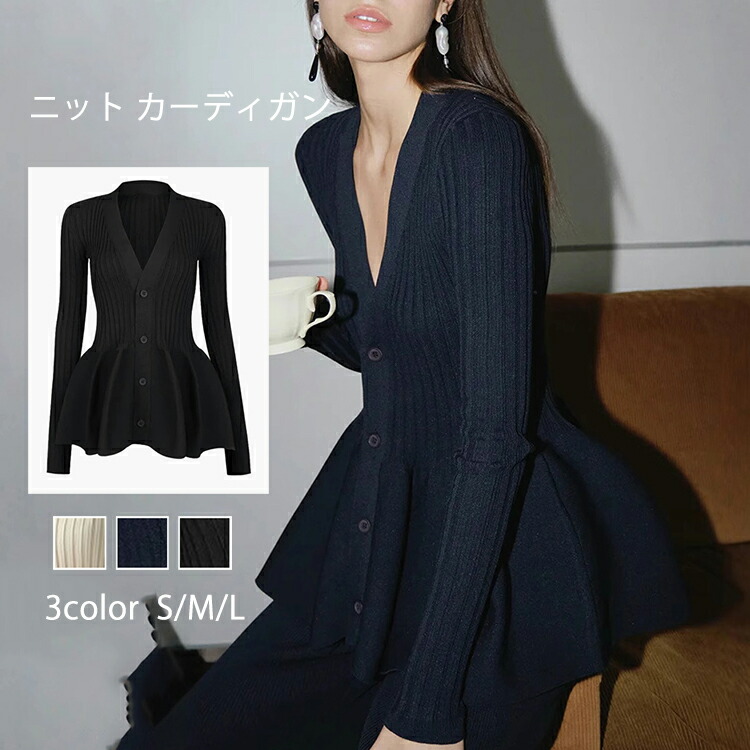 ペプラム ニット カーディガン レディース ニットカーディガン トップス ペプラムカーディガン 前開き 羽織り 長袖 Vネック フレア フィット 上 ニットプルオーバー