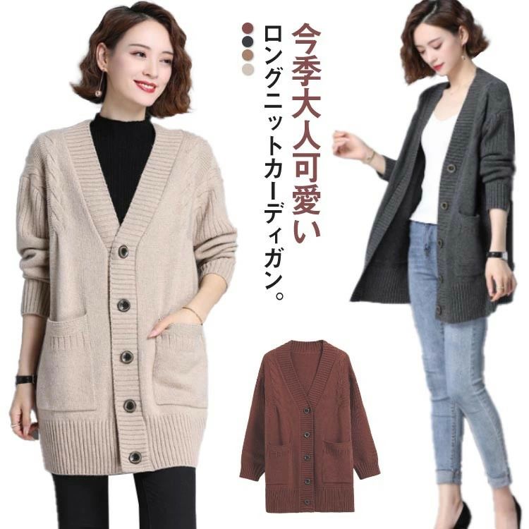 ニット カーディガン レディース 長袖 厚手 ロング ニットカーデ