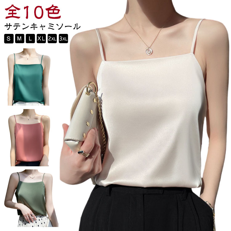 キャミソール シルク サテン 春夏 インナー おしゃれ ノースリーブ ブラウス トップス 大きいサイズ サテンキャミソール ナローストラップ レディース シルクタッチ 長め 夏物 タ 楽ちん