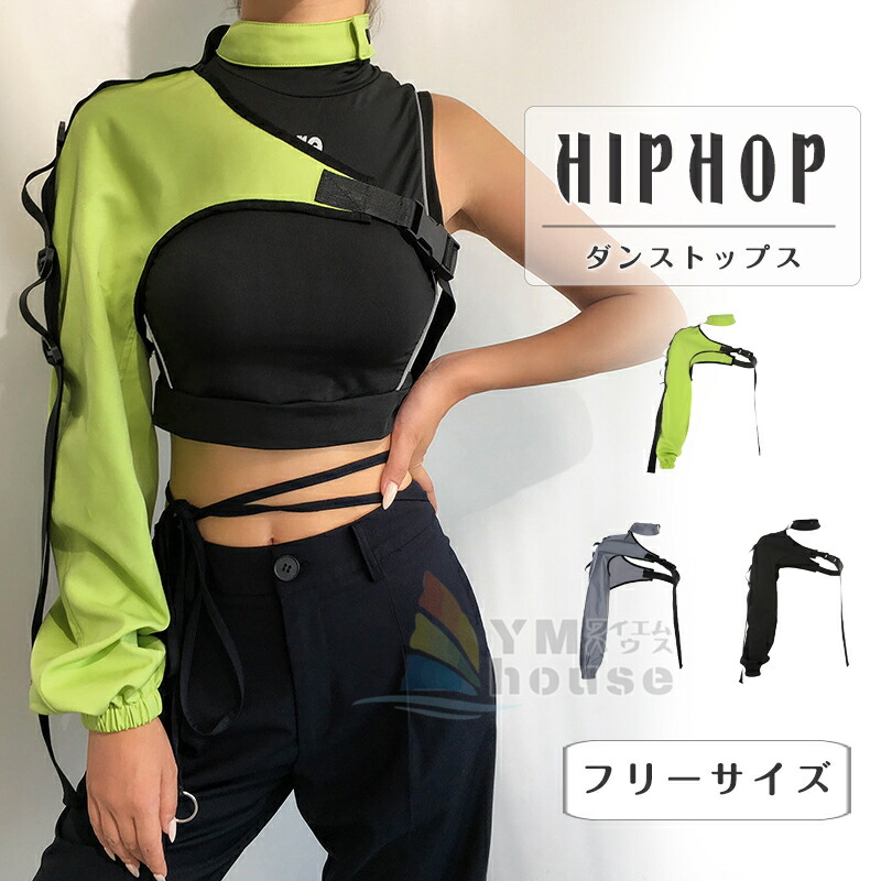 レディース ダンス衣装 トップス アームウォーマー 片腕 スリーブ 衣装 ダンス イベント HIPHOP ヒップホップ 長袖 韓国 ファッション かっこいい おしゃれ 黒 ブラック 蛍光色 セクシー