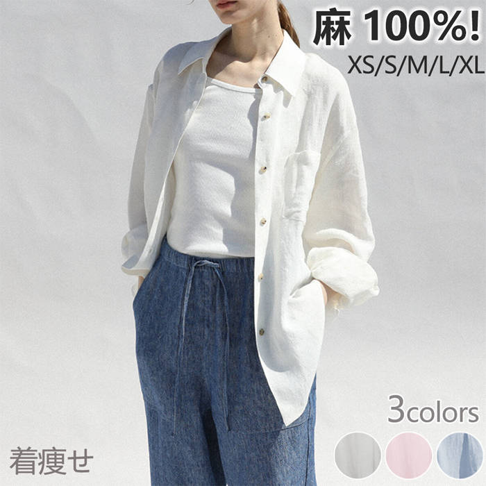 麻 シャツ リネン レディース 白シャツ 長袖 ブラウス 麻100% レディースシャツ 無地 トップス ゆったり カジュアル シンプル 着痩せ おしゃれ 20代 30代 体型カバー