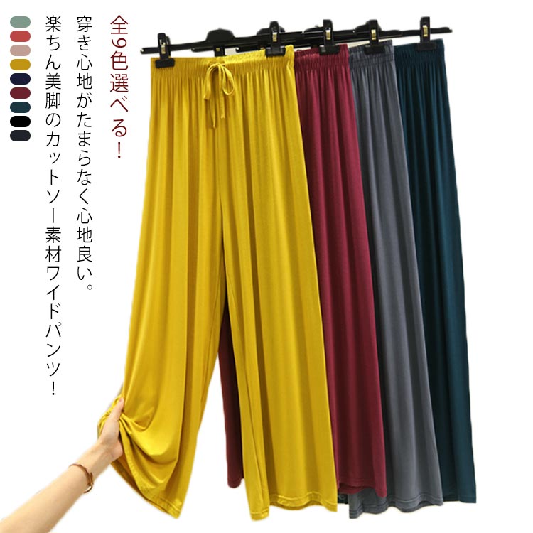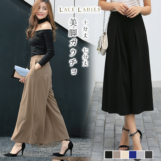 大人気 美脚 ガウチョ きれいめ 10分丈 7分丈 ワイドパンツ ガウチョパンツ スカンツ スカーチョ レディス レディース 春 夏 秋 パンツ 黒 ベージュ グレー チャコール ゴムウエス ネイビー