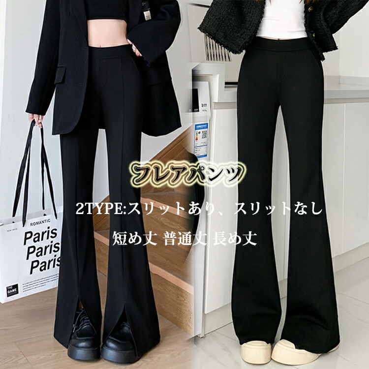 フレアパンツ ロングパンツ フレア パンツ レディース ワイドパンツ ストレート ブーツカット スラックス ベルボトムス スリット カジュアル 通勤 スーツパンツ 黒 美脚パンツ パンタロン