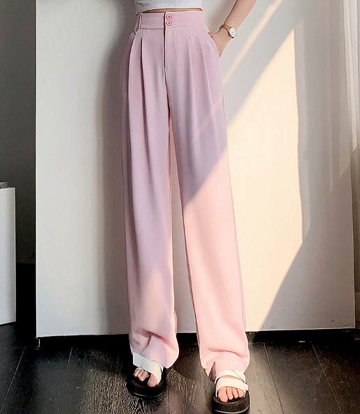 ズボン ボトムス パンツ ハイウエスト ロング 無地 ブラック ピンク ホワイト シンプル 細身 レディース 上品 韓国 トレンド ストリート
