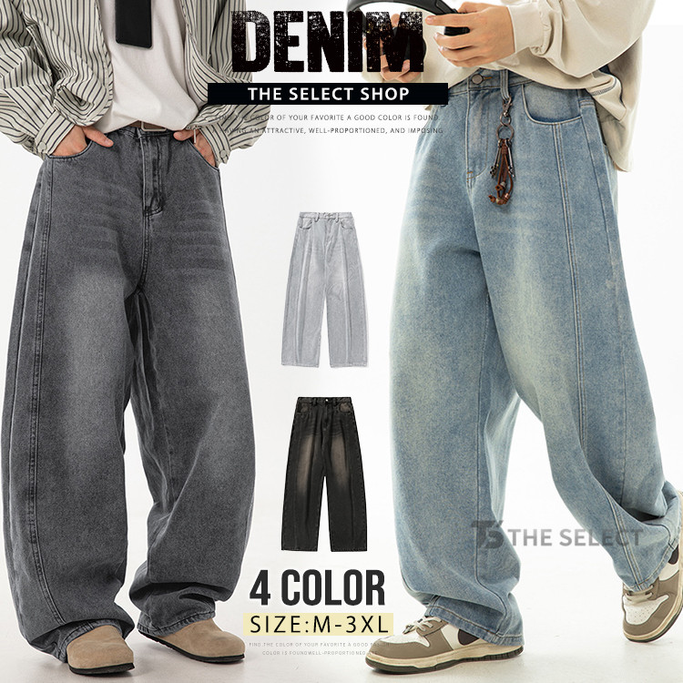デニムパンツ メンズ ジーンズ ジーパン デニム バルーンパンツ Gパン 大きいサイズ ワイドパンツ ワイドデニム バギーパンツ 太め ゆったり ブラック ブルー チノパンツ 春 秋服 韓国 ファ 秋