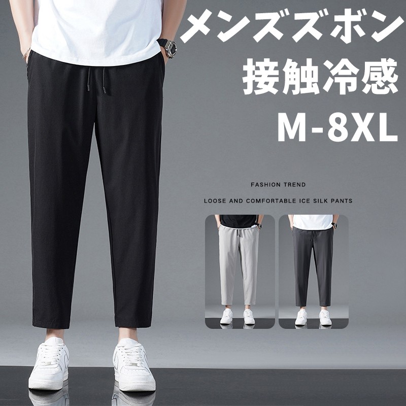 ズボン メンズ パンツ 夏服 接触冷感 アイスシルクパンツ -5℃ 涼しい 速乾 超ストレッチ 薄手 軽量 通気性 快適 ゆったり 9分丈 美脚 スウェットパンツ 調整紐 ボトムス 部屋着 夏 人気