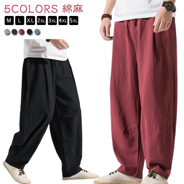ワイドパンツ サルエルパンツ バギーパンツ メンズ 夏 リネン カジュアル イージーパンツ ゆったり ロングパンツ リラックス ルームウェア 春 綿麻 秋 コットン ウエストゴム 長ズボン 父の 無地