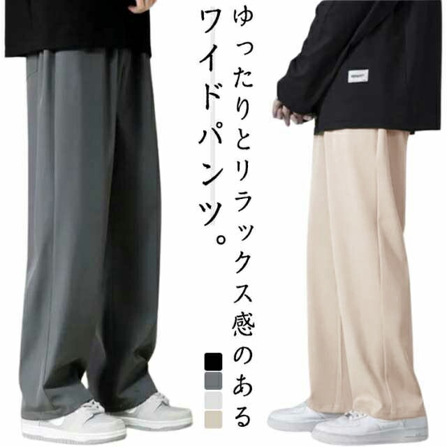 ワイドパンツ メンズ ストレートパンツ 長ズボン ボトムス 涼感 ロングパンツ ウエストゴム シンプル 涼しいズボン 無地 カジュアルパンツ 通気性 パンツ 運動着 カジュアル ビジネスパンツ 部屋着