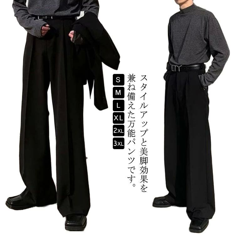 ビジネス 洗える ボトムス ゆったり ワイドパンツ センタープレス スラックス ロングパンツ シューカット メンズ 大きいサイズ