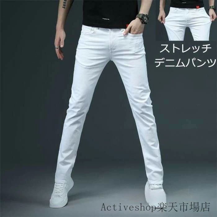 スキニー スキニーパンツ ジーンズ ズボン ホワイト ビジネス ストレッチ ホワイトジーンズ スキニーデニム 白 メンズ