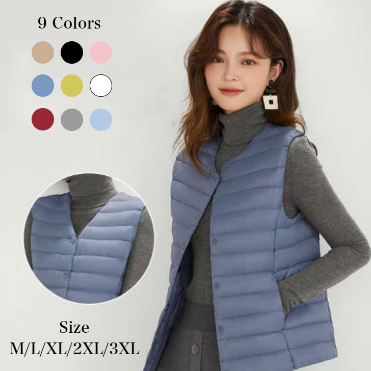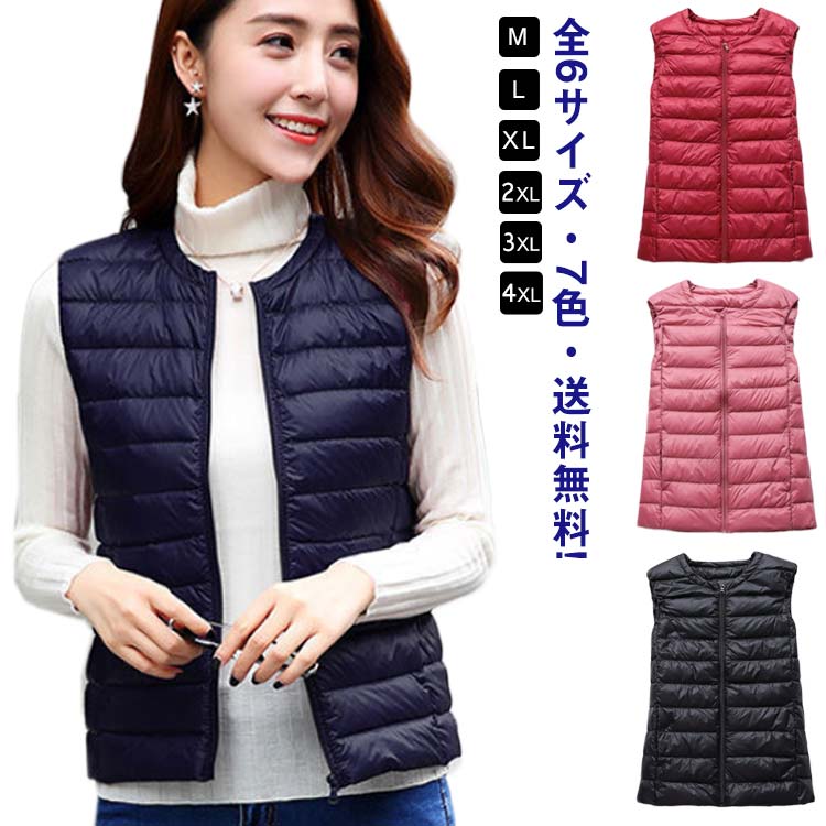 大き 春 冬 秋 インナーダウン ジャケット ライトダウンベスト トップス アウター ジレ ダウンベスト ベスト ダウン レディース
