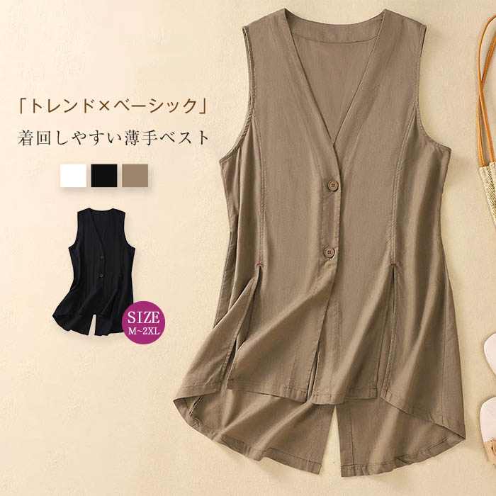 クーポンで2080円 ジレ ベスト レディース 春夏 トップス ロング丈 ロングジレ ロング サマーベスト ノースリーブ 羽織り 無地 着回し オフィス カジュアル レイヤード