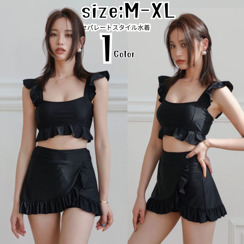 水着 ビキニ タンキニ セットアップ セパレート レディース レディース水着 フレア フリル ブラック黒 可愛い オトナ女子 盛れる きれいめ 海水浴 温泉 ビーチ おしゃれ ブラック ガーリー 大人