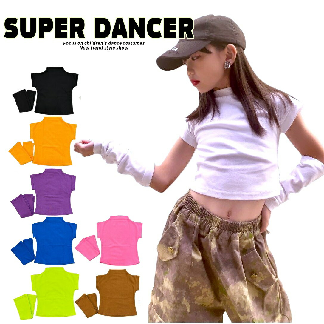 キッズダンス衣装 トップス 白 黒 オレンジ 紫 青 黄緑 ピンク ブラウン 無地 ヒップホップ衣装 ダンス練習着 子供ダンス服 ダンス衣装 キッズ ダンスウェア