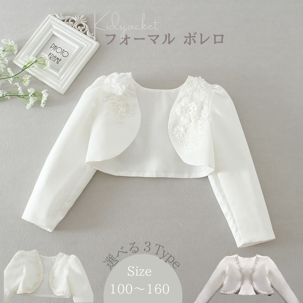 ボレロ 子供 長袖 カーディガン 結婚式 子供服 女の子 春夏秋 可愛い キッズ フォーマル ドレス 子どもフォーマルジャケット 通園 通学 入園式 入学式 発表会 演奏会ホワイト 卒園式