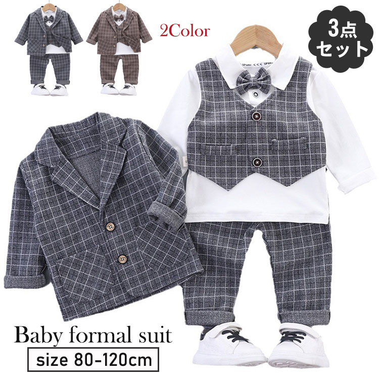 ベビースーツ 男の子 3点セット 男の子スーツ 紳士服 チェック柄 キッズ フォーマルスーツ 春秋 冬 ジャケット シャツ ズボン セットアップ服 上下セット おしゃれ 結婚式 発表会 入園式 七五三