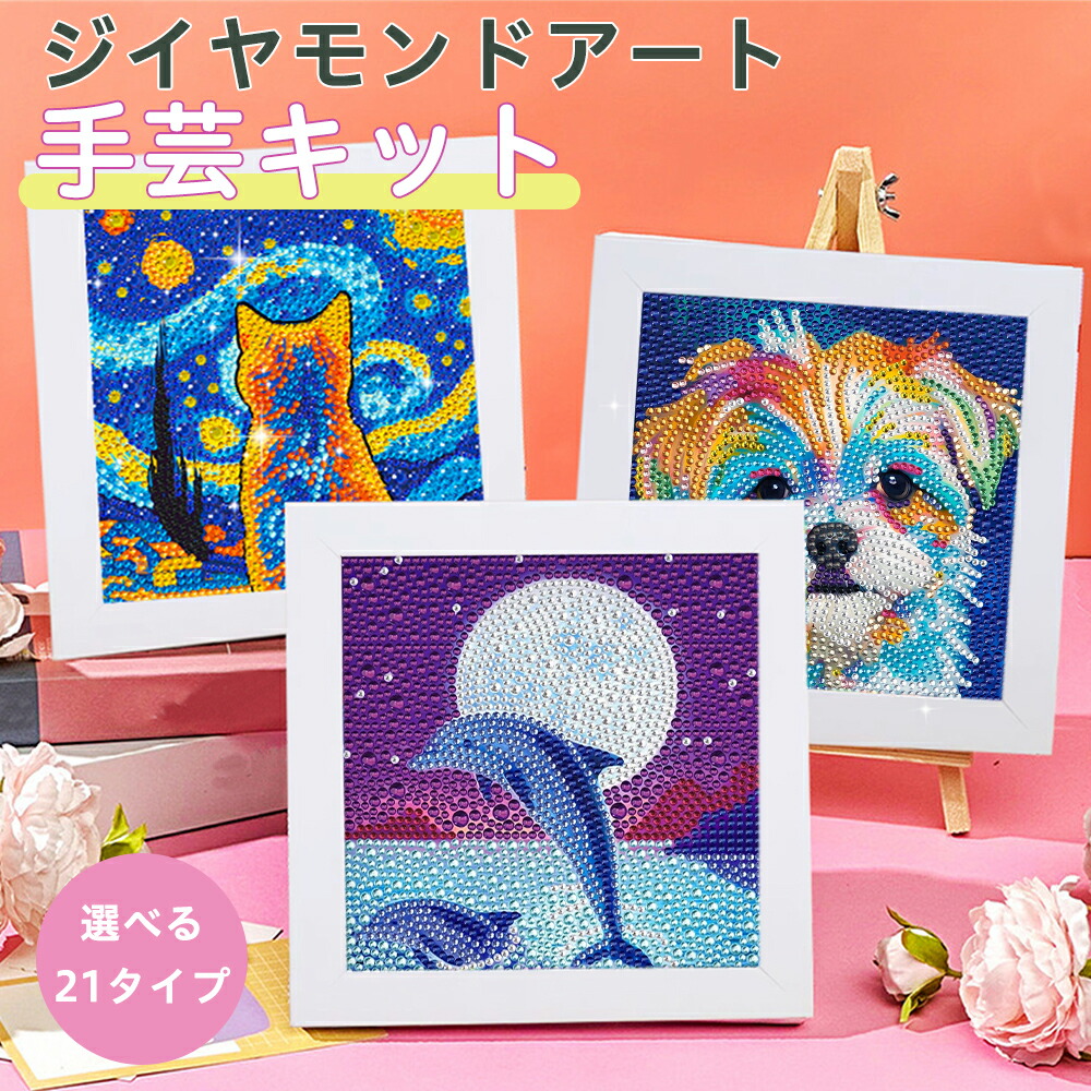 ダイヤモンドアート 初心者 四角 キット 猫 刺繍 ビーズ ネコ 犬 蝶 イルカ 額縁 ポケ防止 イラスト 5D 子供 フレーム付き セット メイキング 知育 男の子 プレゼント 誕 キラキラ
