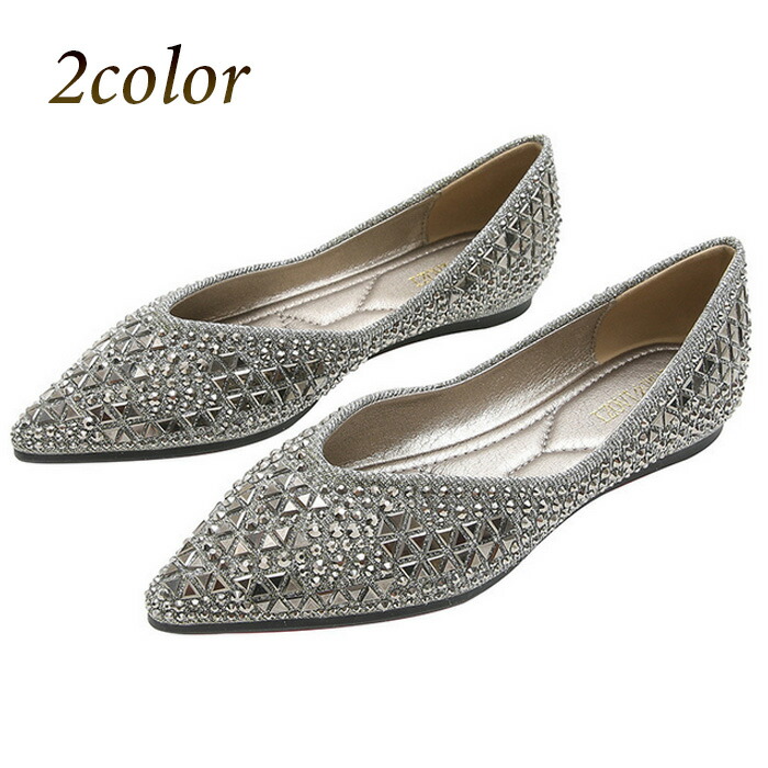 フラットシューズ パンプス ラインストーン パーティシューズ スタッズ ソフト 可愛い ゴールド ブルー キラキラ