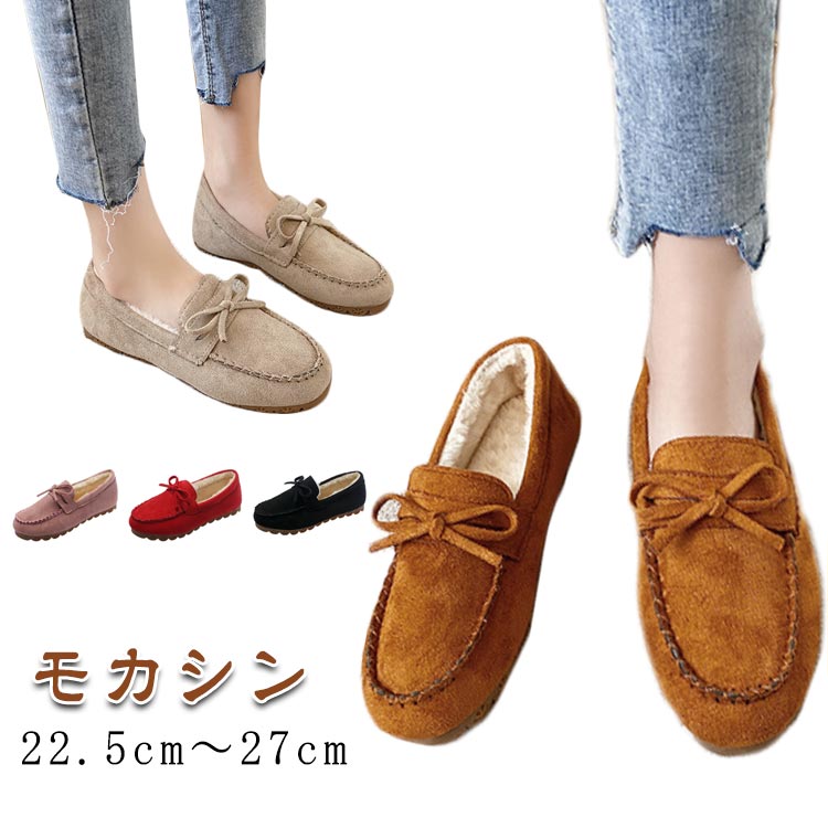 リボン モカシン レディース カジュアルシューズ 裏起毛 モカシンシューズ ムートン ファー あったか 防寒 フラット 歩きやすい 雪 大きいサイズ やわらかい 内ボア 秋 小さいサイズ