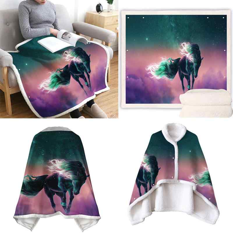 ブランケット 着る毛布 ポンチョ 馬柄 3Dデザイン 厚手 暖かい ふわふわ 両面起毛 マルチ 変身 ルームウェア 部屋着 冷房対策 オールシーズン ひざ掛け ショール ケープ 防寒