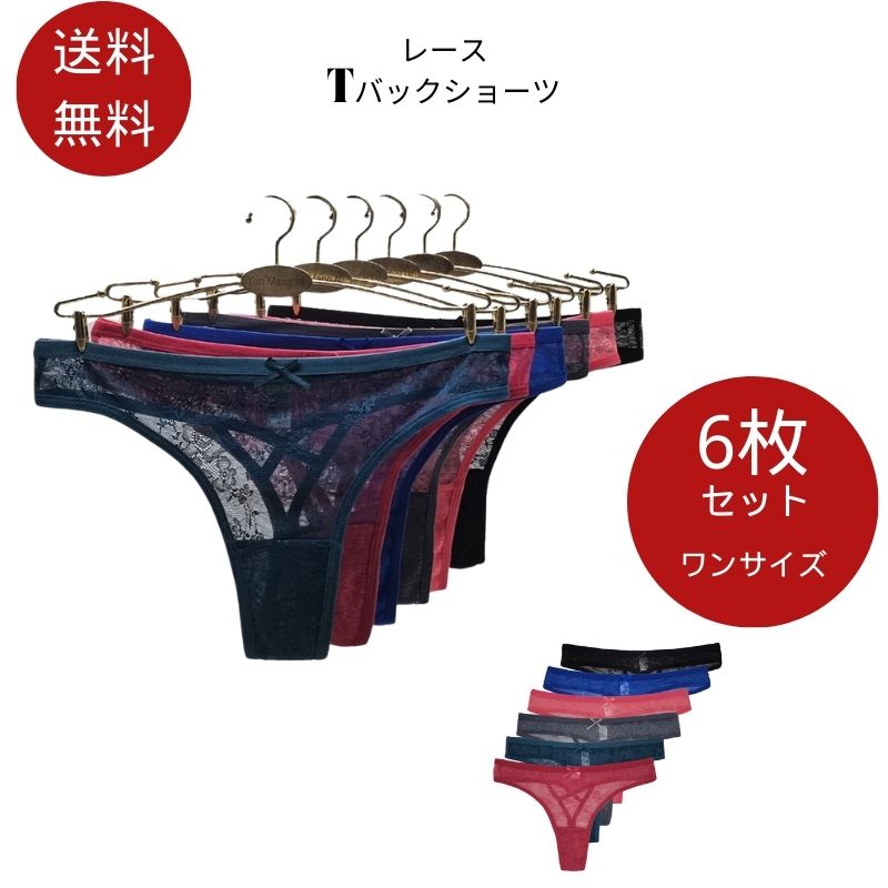 シームレス Tバックレース ショーツ 6枚組セット レディース セクシー レース セット タンガ Tバックショーツ 女性 響かない素材 バックレース サラッと快適 べたつきゼロ 下着 パンツ 大 速乾
