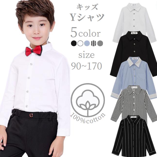 100%綿子ども ワイシャツ 子供シャツホワイト ブラックブルー ストライプ 子供 yシャツ長袖 白シャツ 黒シャツ 卒園式 入園式 入学式 卒業式 フォーマル 仮装 シミラールック キッズ 男の子